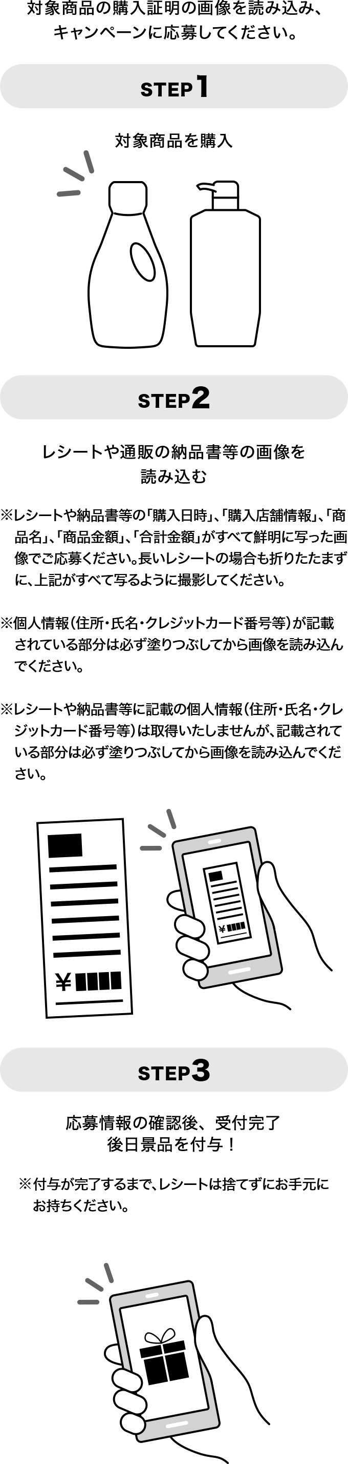 - ・ご応募のレシート/購入明細は、賞品が付与されるまで保管ください。