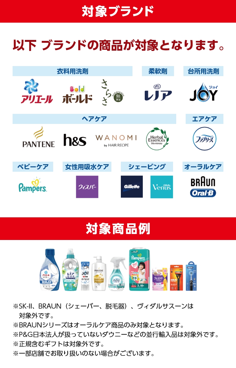 - ※P&G日本法人が扱っていないダウニーなどの並行輸入品は対象外です。