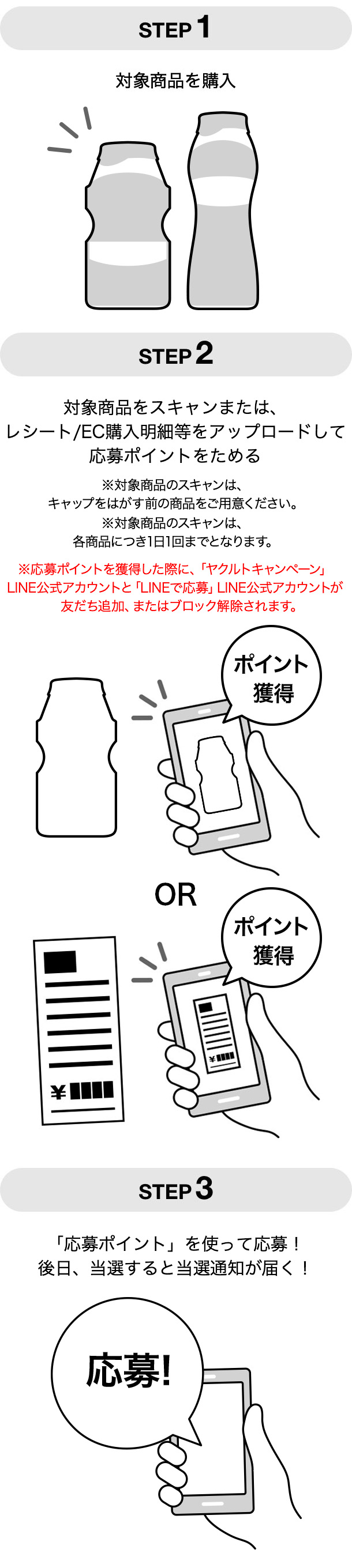 対象商品を購入したレシート/EC購入明細等の画像をお送りいただけない場合は、応募ポイント付与の対象外となります。