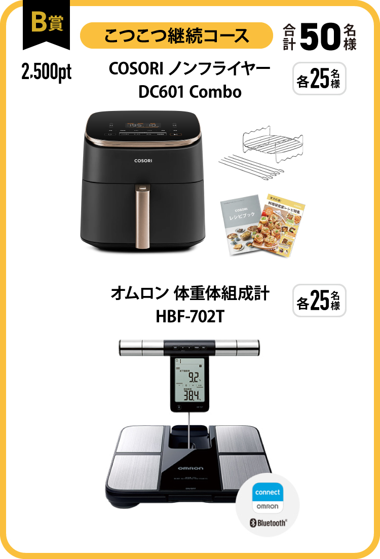 B賞<こつこつ継続コース(2,500ポイント)> 合計50名様
