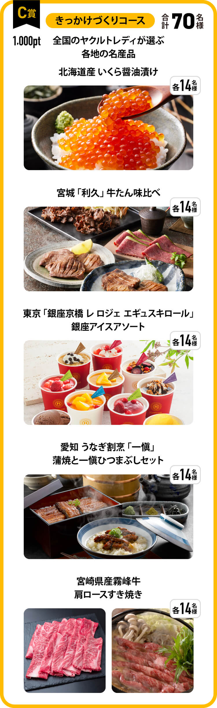 C賞<きっかけづくりコース(1,000ポイント)> 合計70名様